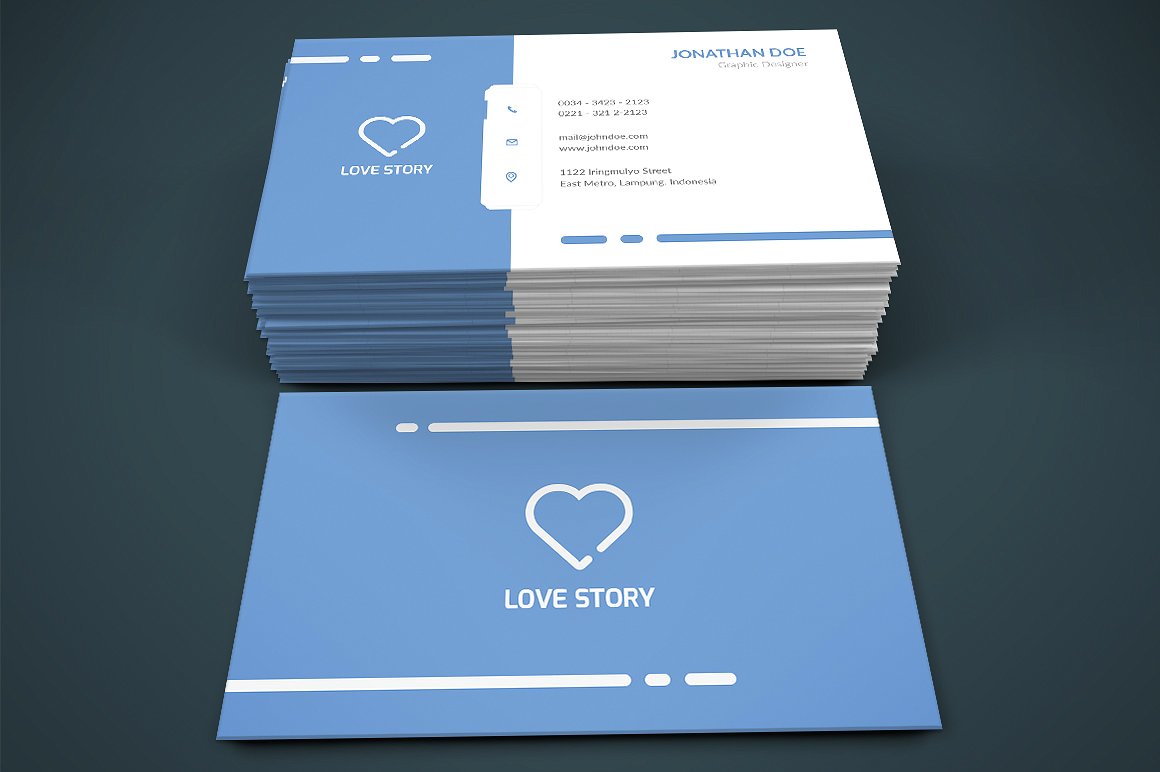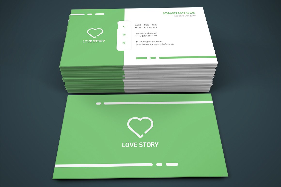 Biglietto da visita dall’aspetto pulito e semplice con colori flat coordinato al tuo logo.