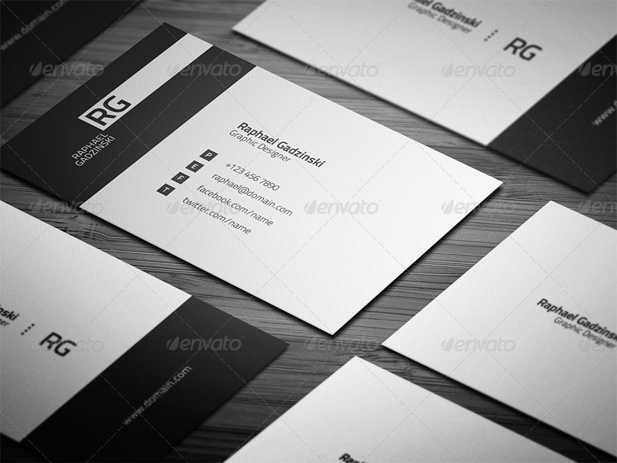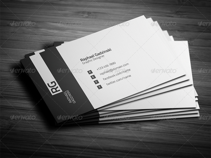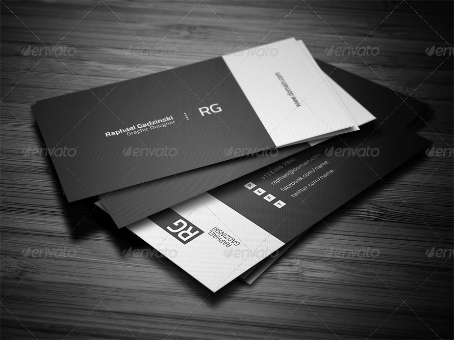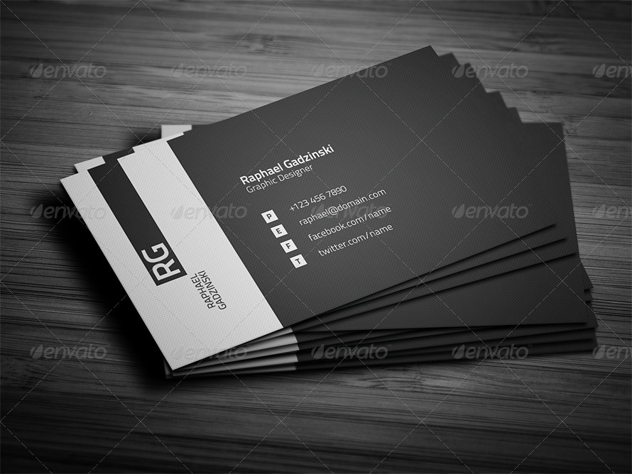 Biglietto da visita semplice ed elegante, con stile minimal e scuro, adatto a tutti i freelance come grafici, fotografi, sviluppatori.