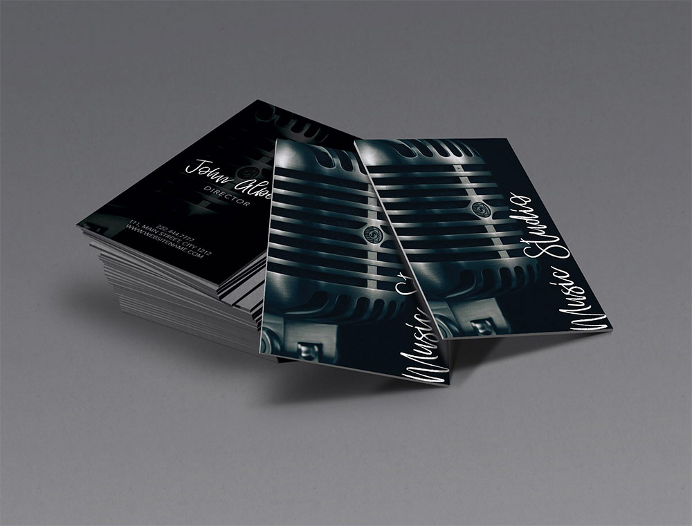 Biglietto da visita con grafica ideale per chi lavora nel mondo della musica: musicisti, dj, mixeristi, ingegneri e tecnici del suono. Adatto anche a studi di registrazione.