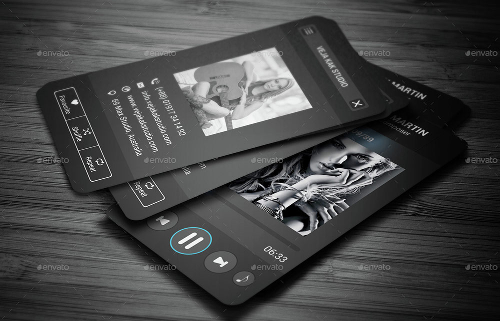 Biglietto da visita con grafica ideale per chi lavora nel mondo della musica: musicisti, dj, mixeristi, ingegneri e tecnici del suono. Adatto anche a studi di registrazione.