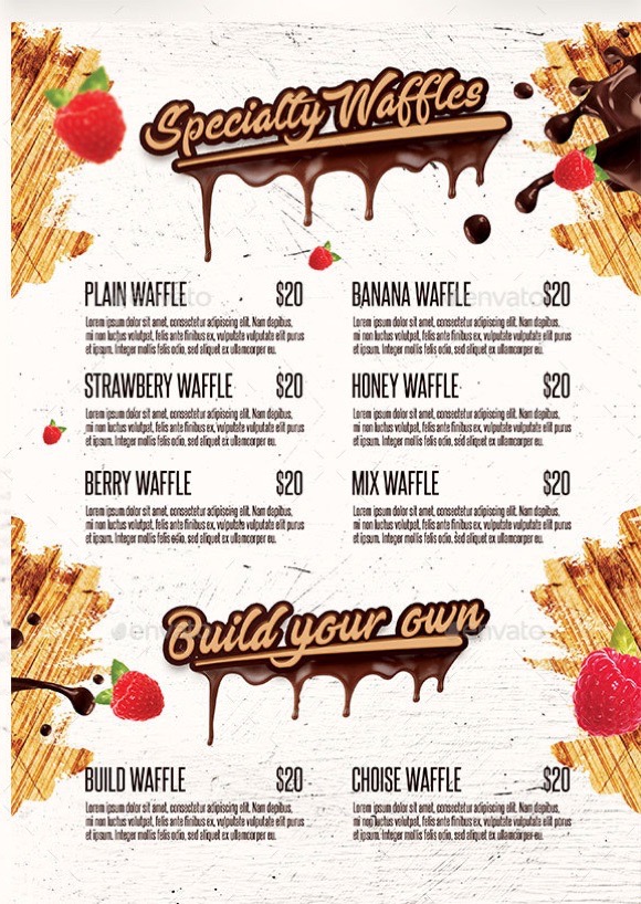 Menù specificatamente pensato pasticcerie. Doppia facciata con spazio dedicato alle immagini di presentazione. Potete fornisci le vostre foto ed i vostri contenuti e noi li inseriremo per voi personalizzando anche il tema colore con il vostro logo.