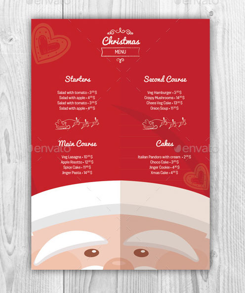Menù per una cena o pranzo durante le festività con Babbo Natale.