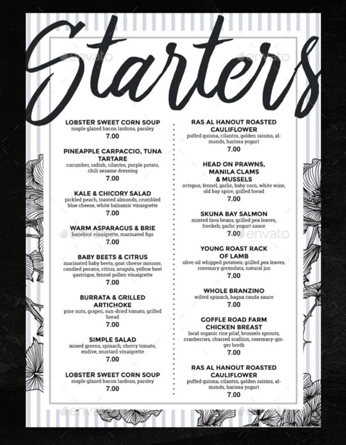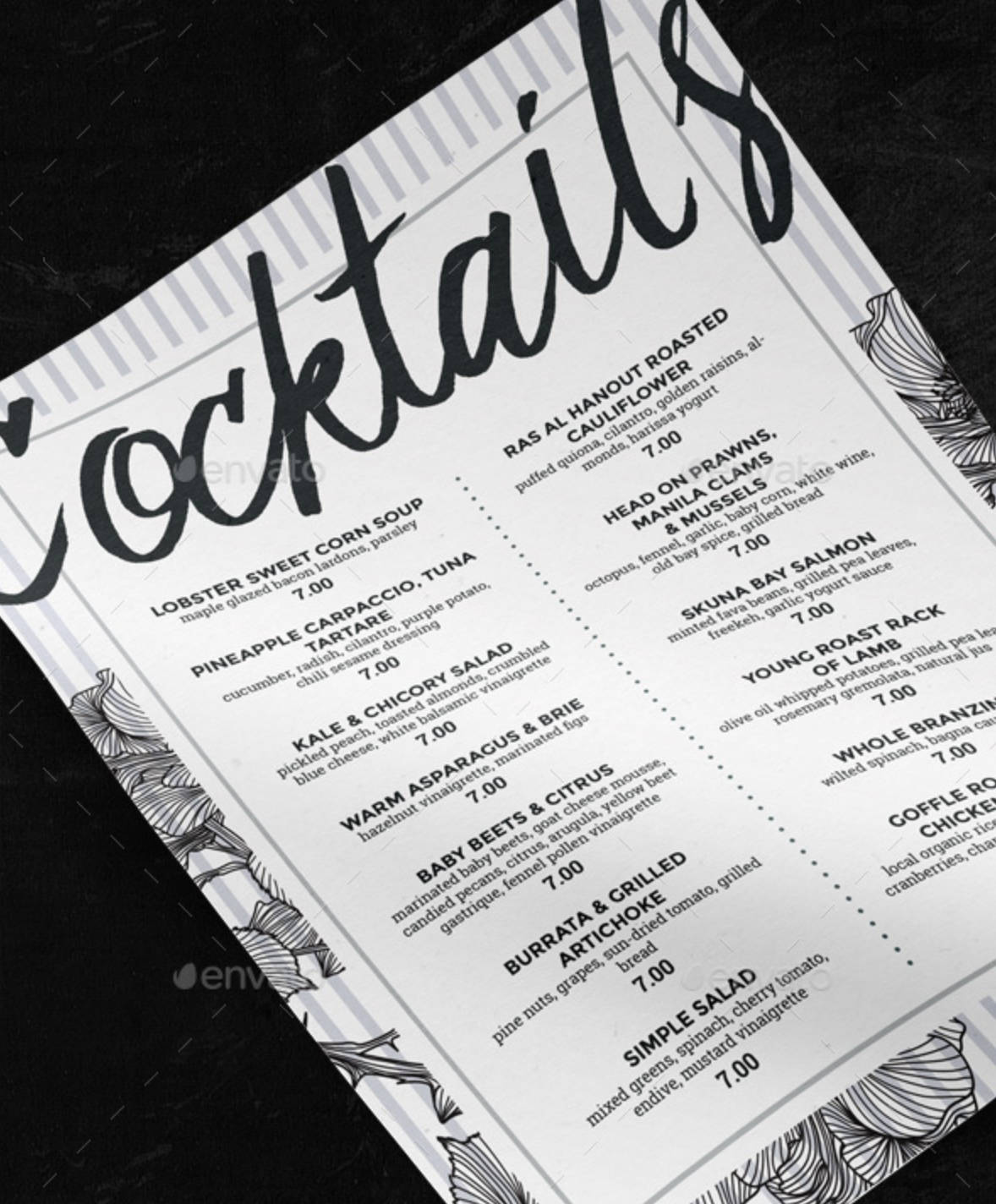 Menù floreale per ristorante pub
