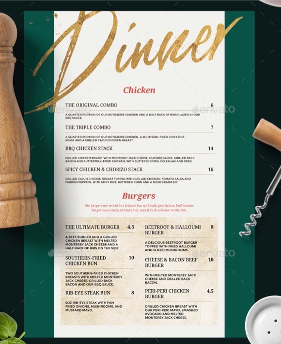 Menù moderno pub, birreria, paninoteca, locali, ristoranti o pizzerie. Doppia facciata, per dare spazio alle preparazioni in maniera ordinata e chiara. Possiamo personalizzare questo modello per le tue esigenze.