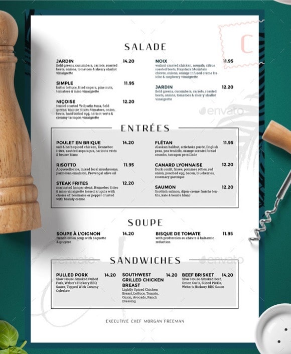 Menù moderno pub, birreria, paninoteca, locali, ristoranti o pizzerie. Doppia facciata, per dare spazio alle preparazioni in maniera ordinata e chiara. Possiamo personalizzare questo modello per le tue esigenze.