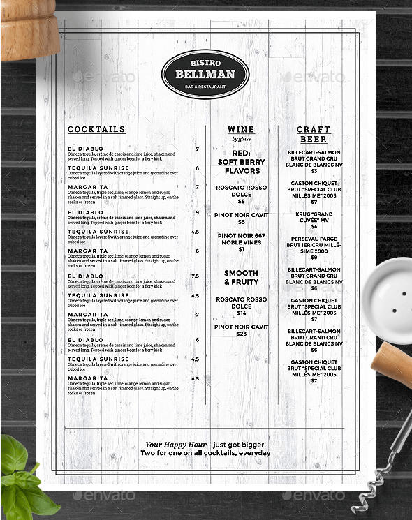 Elegante menù per ristorante o pizzeria o pub, con un fondo tipo legno chiaro e doppia facciata: sulla copertina inseriamo la foto del piatto della tua specialità o ne acquistiamo una per te, sul retro inseriremo tutti i tuoi piatti e servizi.
