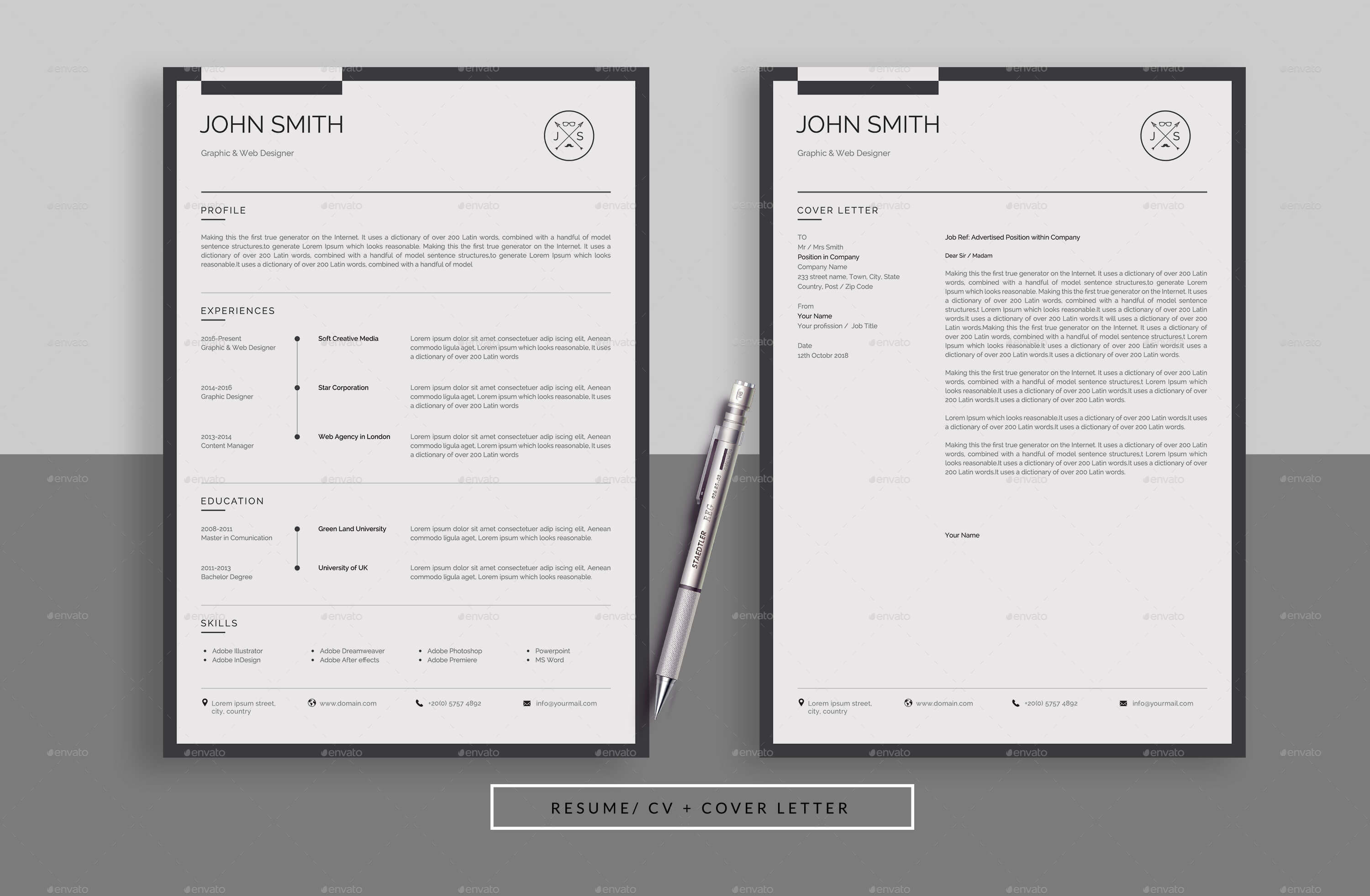 Modello di Curriculum vitae con lettera di presentazione semplice e professionale.