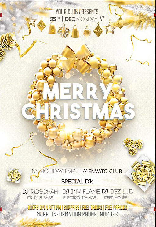 Volantino / poster / cartolina per un evento dedicato alle festività natalizie o capodanno.
