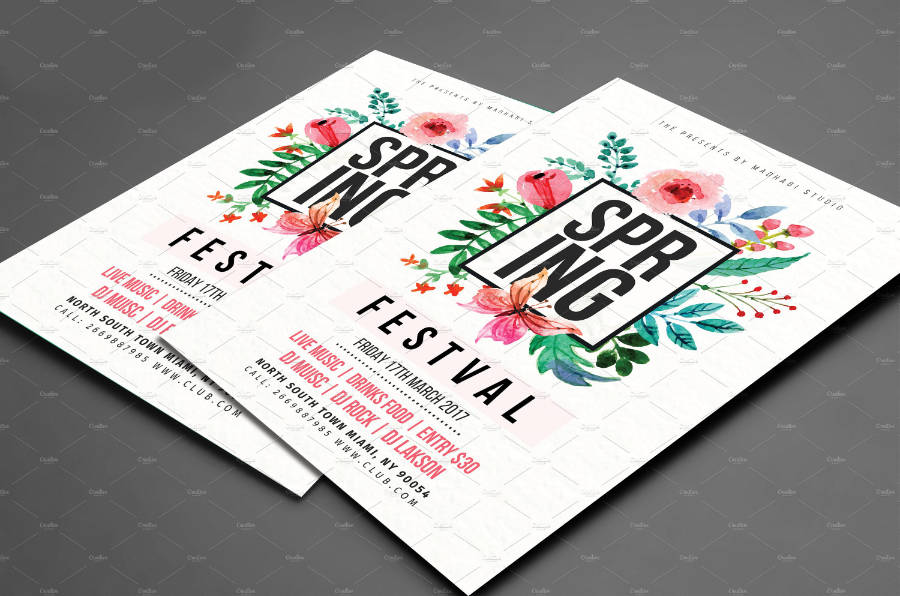 Volantino, flyer, cartolina o poster con la grafica elegante e moderna, ideale per promuovere una festa di primavera in genere. Per locali, attività, associazioni e musica. Adatto a tutti gli usi. Puoi scegliere anche solo il file senza la stampa.