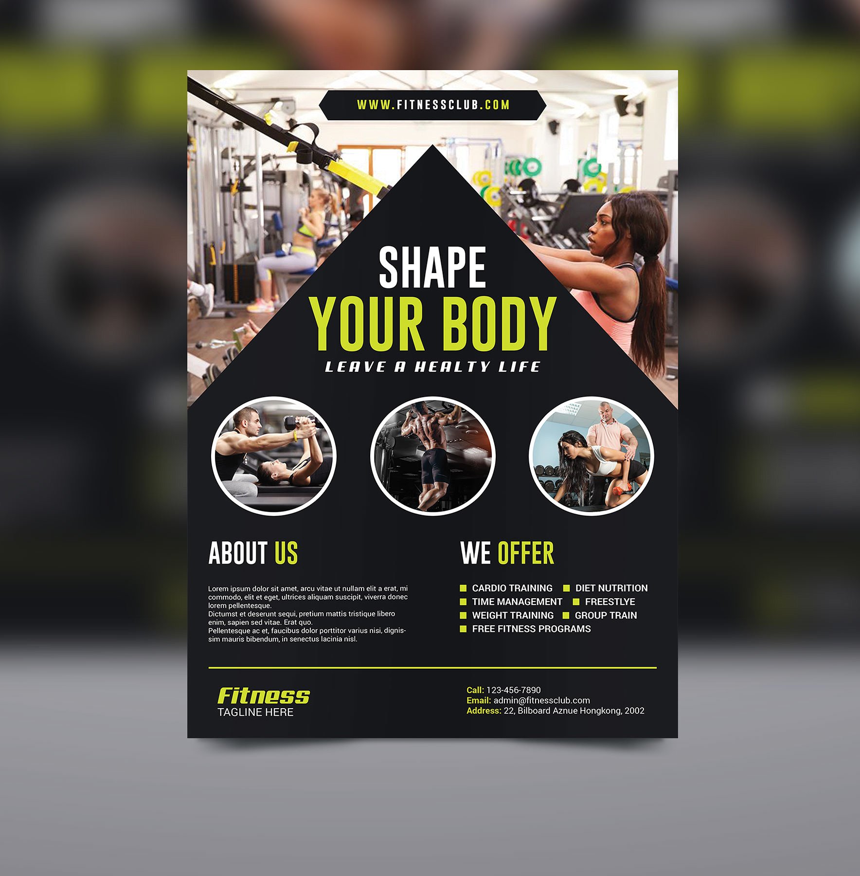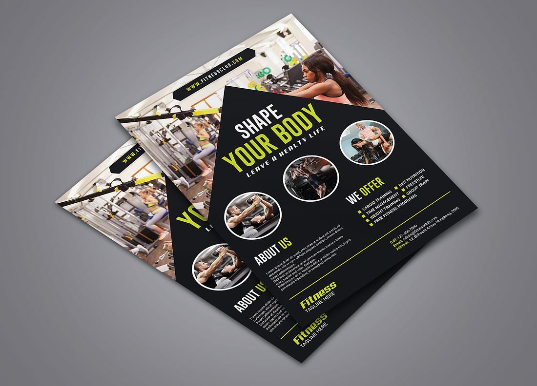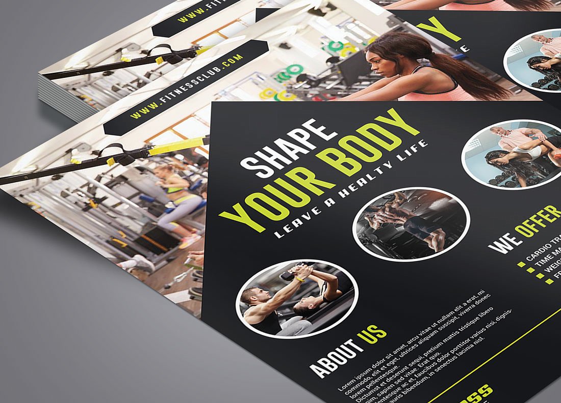 Volantino / poster / cartolina dedicato a palestre o ad eventi promozionali di attività legate allo sport e fitness.