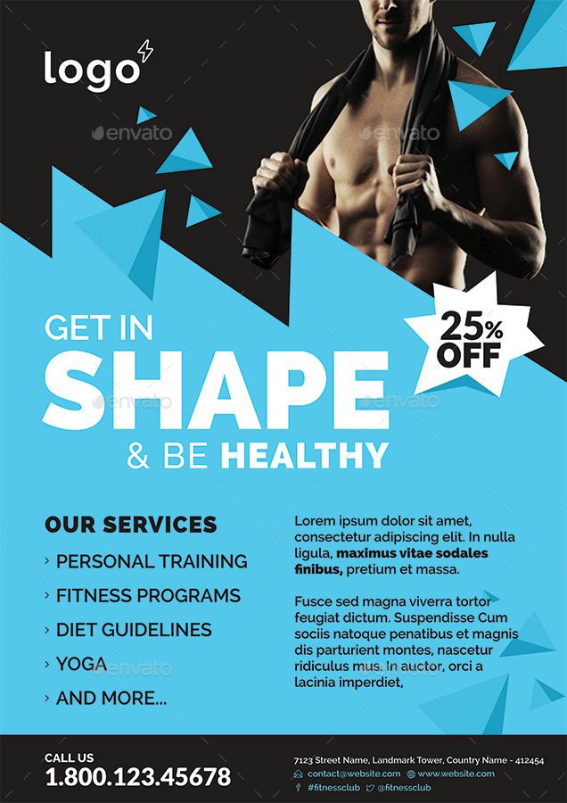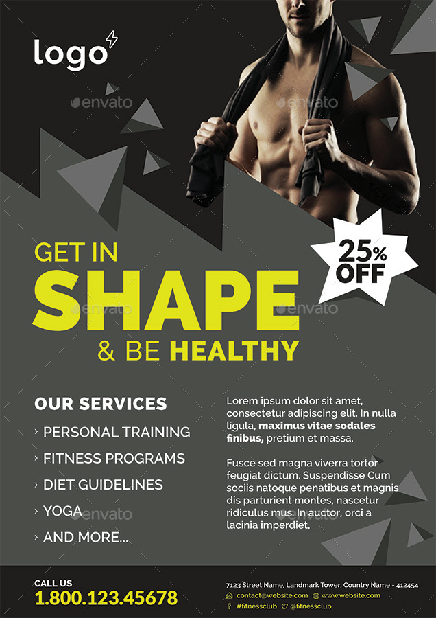 Volantino / poster / cartolina dedicato ad un eventi o promozione di attività legate allo sport e fitness.
