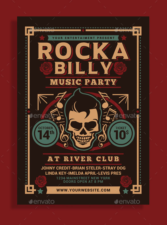 E’ ideale per promuovere un party o serata musicale dedicata. Caratterizzato dallo stile illustrato e tipografico. Adatto ai locali e pub.