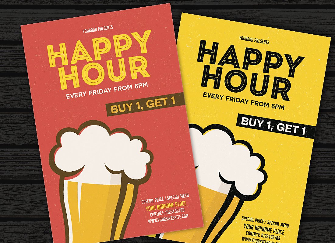 Volantino / cartolina / poster per la promozione di eventi od attività legate al cibo ed eventi tipo happy hour, degustazioni, aperitivi.