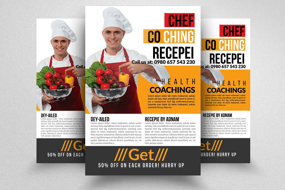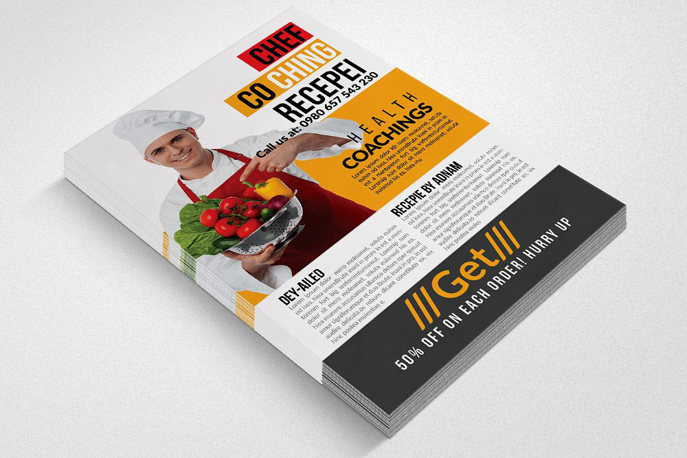 Volantino, flyer o poster con grafica personalizzabile, ideale per corsi, lezioni di cucina e showcooking: inseriamo per te i tuoi dati senza farti usare alcun software